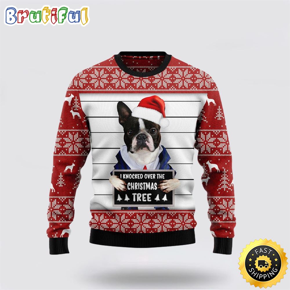 Neasalamis Customizable Boston Terrier I Knocked Over The Christmas Tree Ugly Christmas Sweater Show Your Love For Your Furry Friend – Perfect Holiday Gift for Family and Friends
