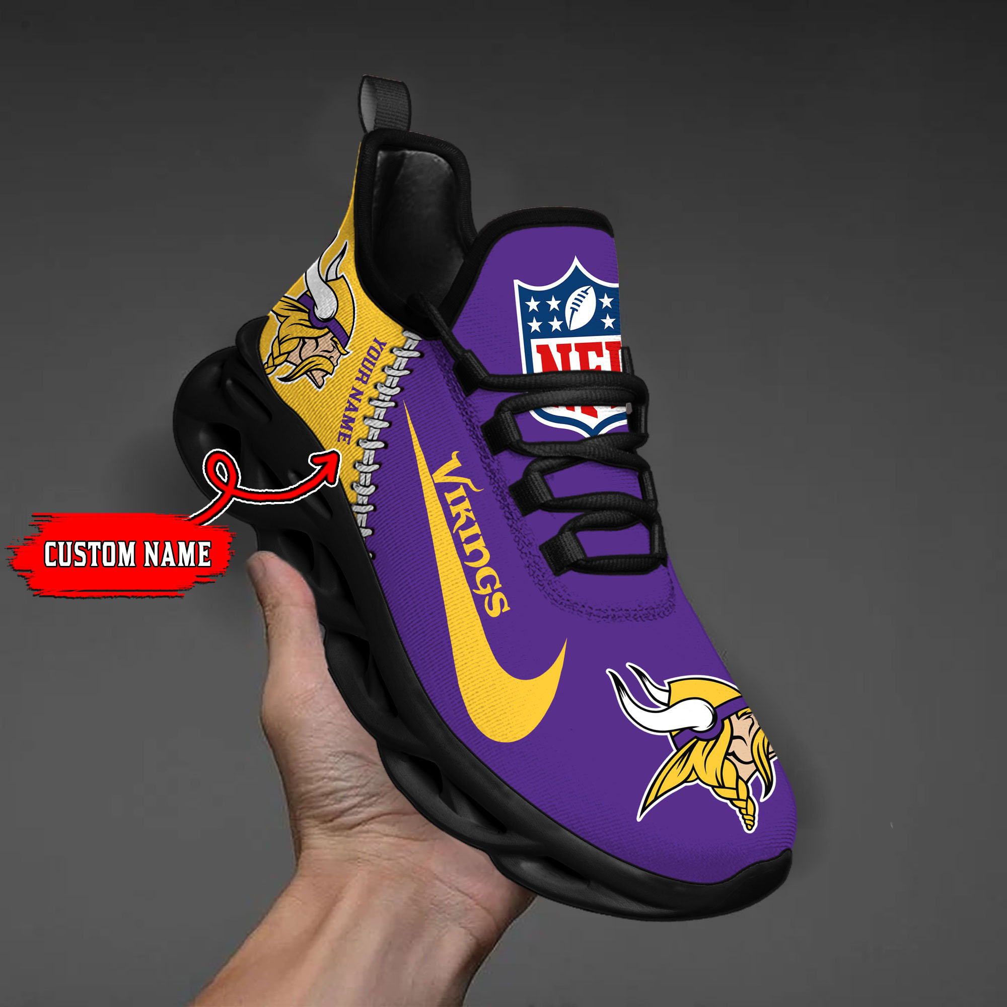 Whether you’re a die-hard football fan, a basketball enthusiast, or a baseball buff, you’ll find the perfect Minnesota Vikings NFL Max Soul Shoes Sneakers For Men And Women to represent your team or sport of choice. Browse our collection now and create a personalized look that’s uniquely you!