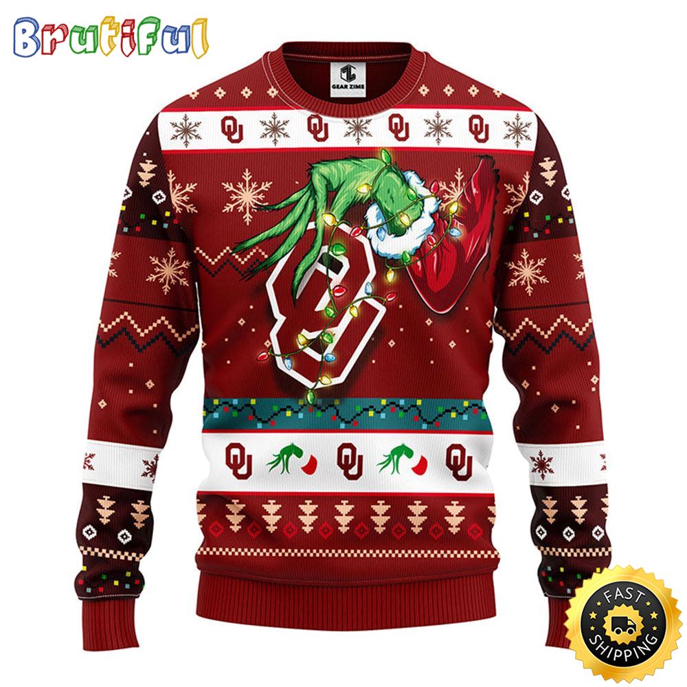 Neasalamis Customizable Ncaa Oklahoma Sooners Christmas Ugly Sweater Grinch Gift For Football Fans – Perfect Holiday Gift for Family and Friends